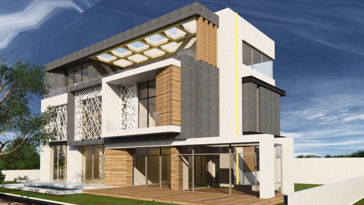 The primary structural challenges in this luxury villa are centered around the cantilever, which includes a canopy over a swimming pool spanning 4.7 meters, as well as an unsupported and spiral-shaped staircase that extends for 8 metersview more