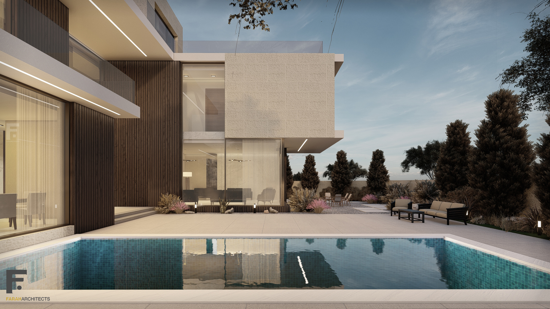 The structural design of this villa stands out for its high-span floor slabs, along with the presence of a transfer slab that spans distances of up to 6 by 12 meters. This transfer slab supports columns planted to accommodate three floors above. Additionally, there are cantilevers of up to 3 meters in length.view more