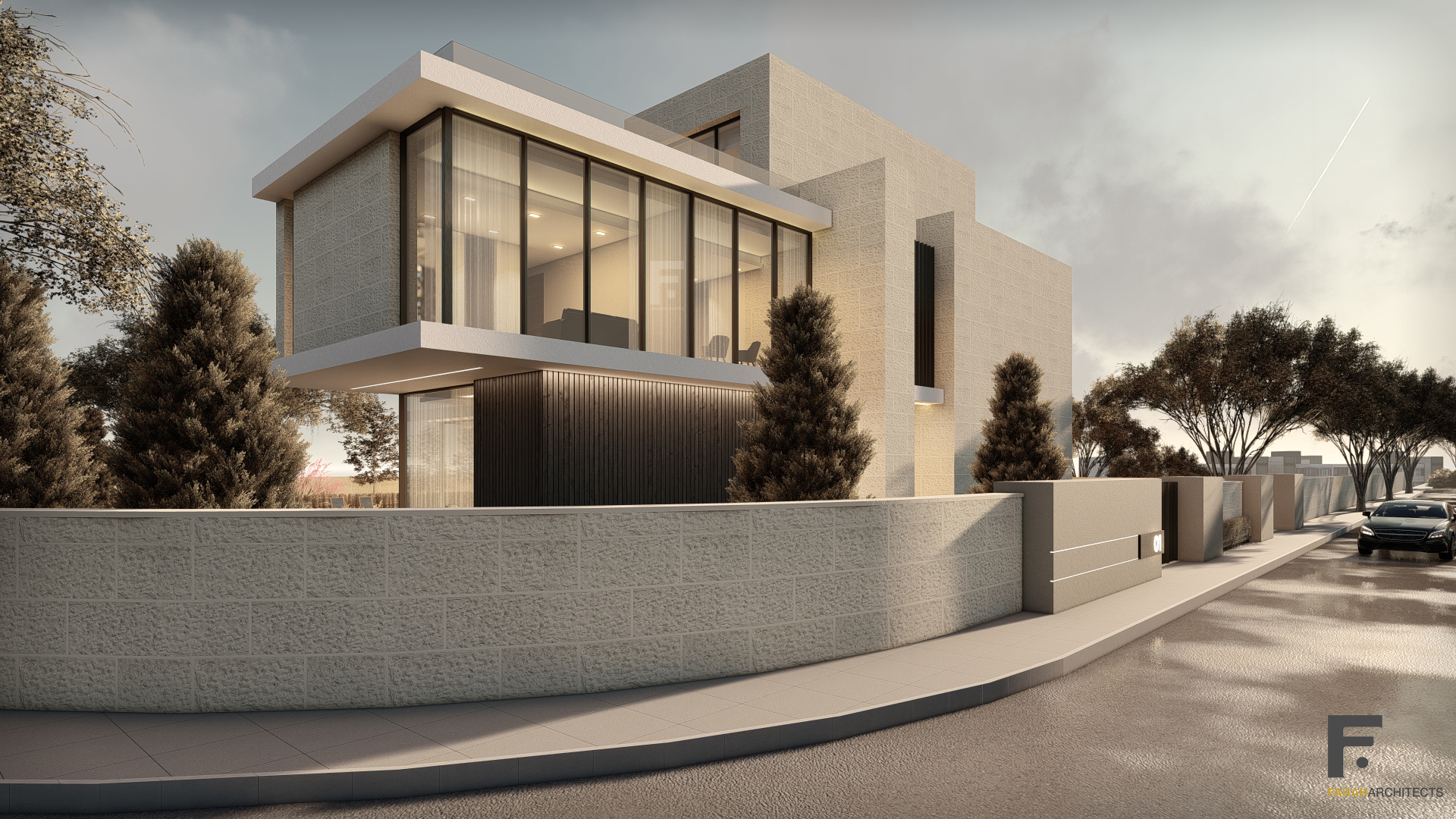 This high-end, luxurious private villa boasts cantilevered concrete slabs extending up to 5 meters. Additionally, it features imposing retaining walls, swimming pools, water tanks, and elegant stone columns.view more