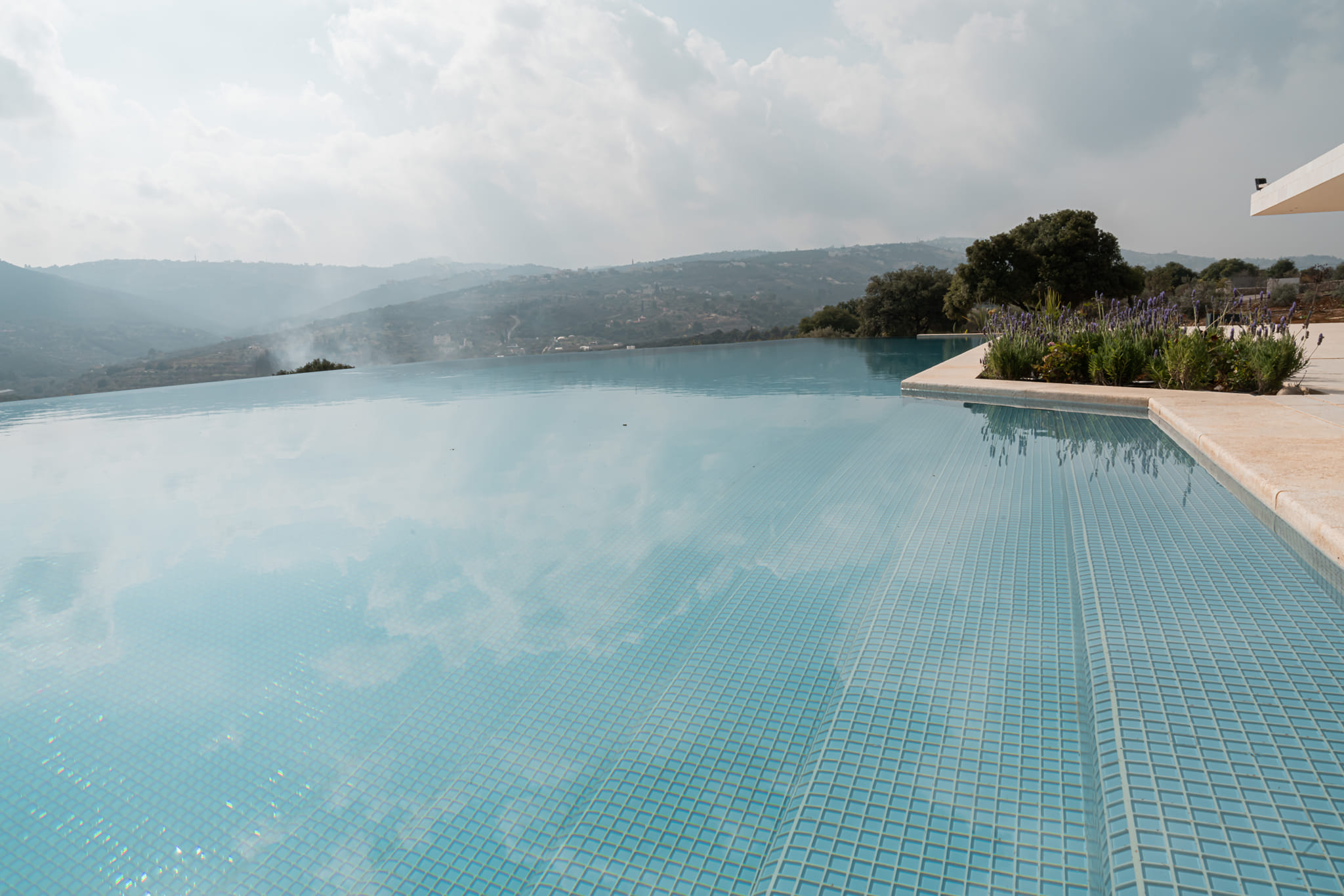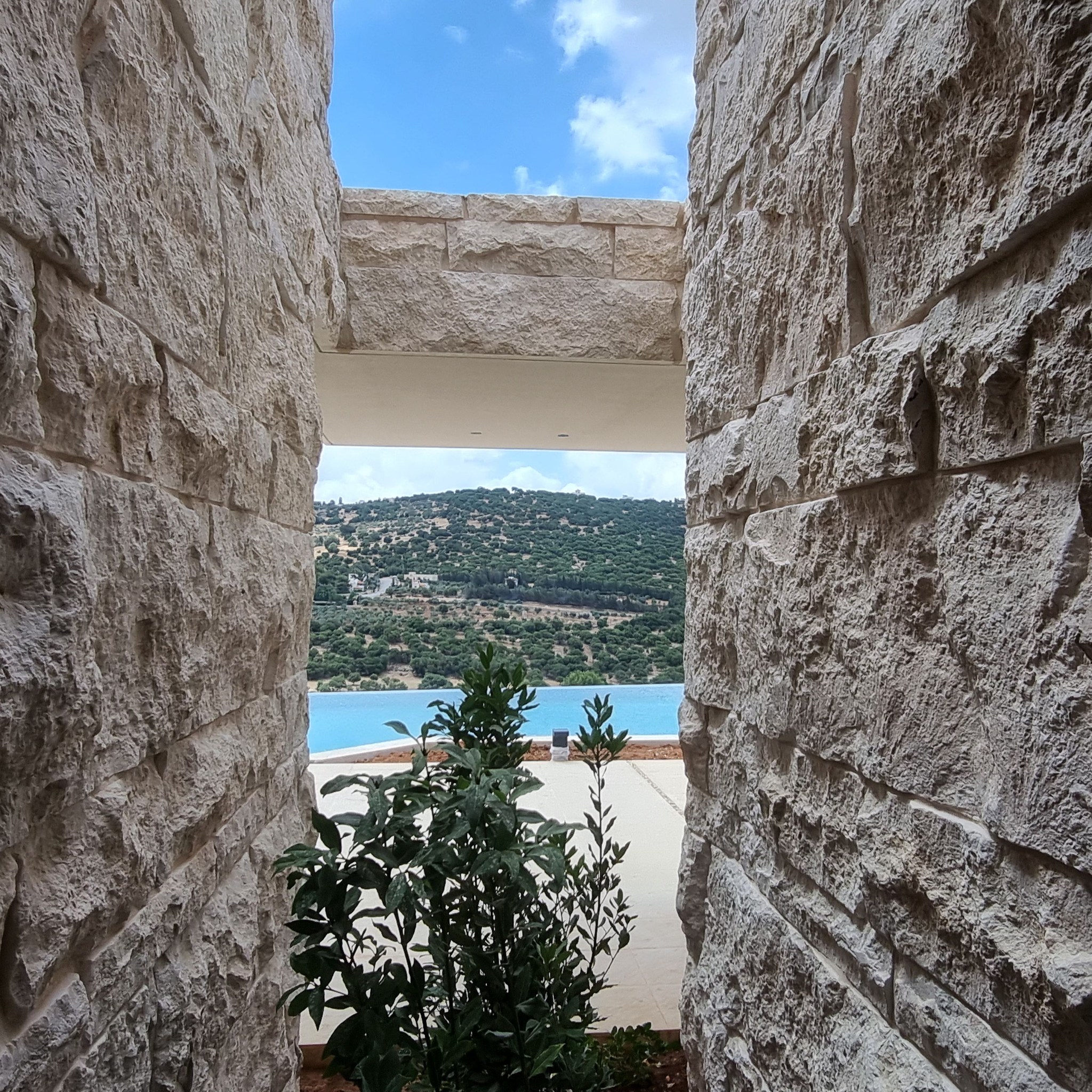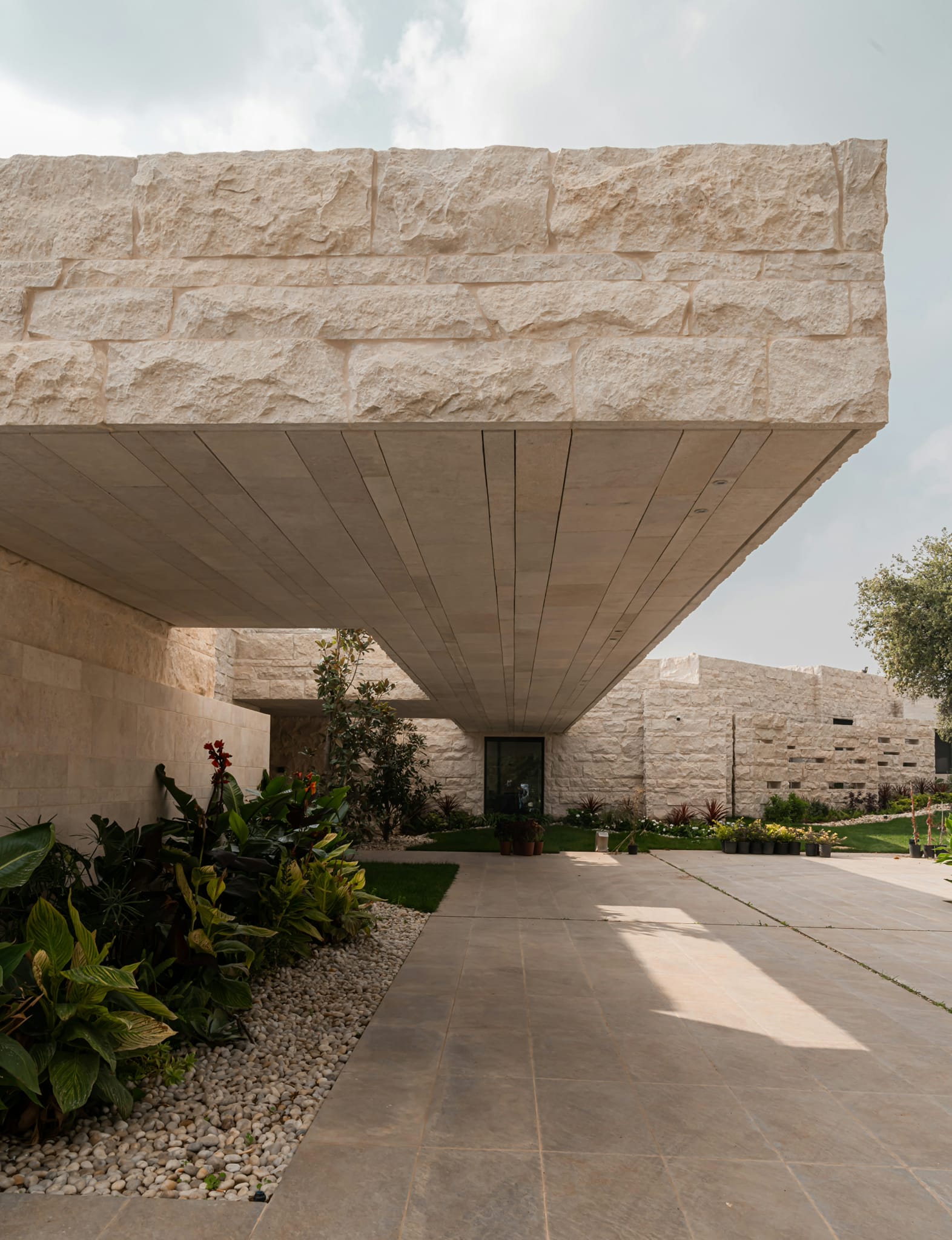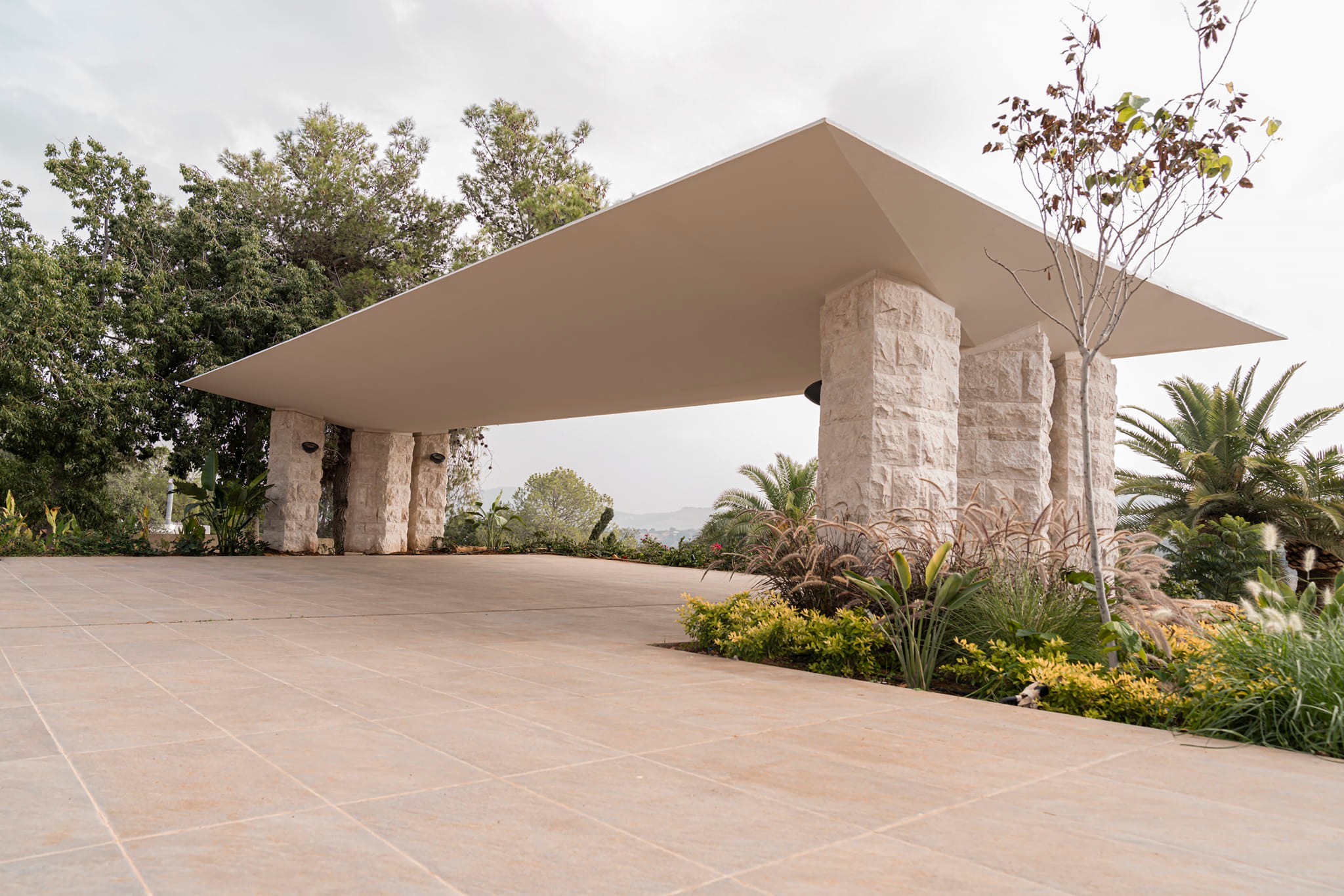 This project is distinguished by the presence of a basement slab containing a swimming pool, with a part of the pool extending about 1.5 meters above ground level. Additionally, there is a cantilevered concrete canopy spanning approximately 3.5 meters. Furthermore, there is an irregularly shaped slab that extends to nearly zero thickness on the sides. In addition, there is a free-standing staircase with a triangular cross-section at the bottom. The project also features a collection of cross vaults.
