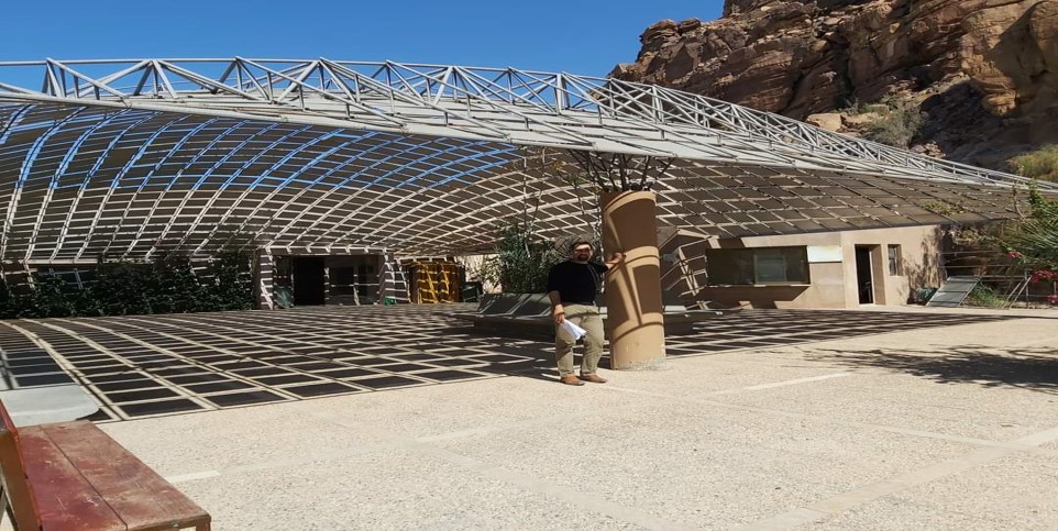 This project is in a scenic reserve in northern Jordan, this project consists of a large visitor center with a curved sloping roof, with small lodges nearby. The structural design is characterized by highly irregular curvature, double-shell slabs and walls, and large cantilevered slabs.view more