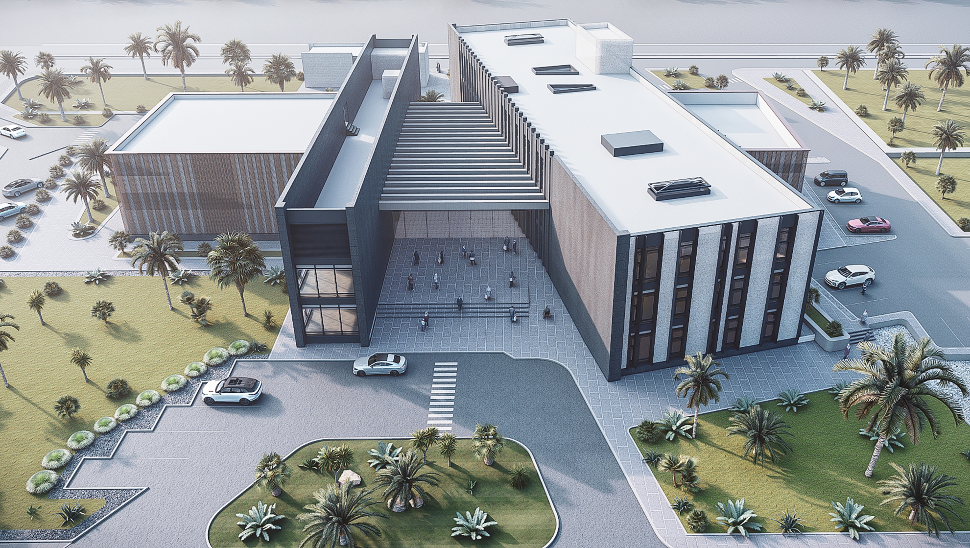 The project consists of two buildings connected by steel bridges. In one of the buildings, the structural system comprises a concrete frame with an 18-meter length, and the footings consist of both raft and isolated foundations.