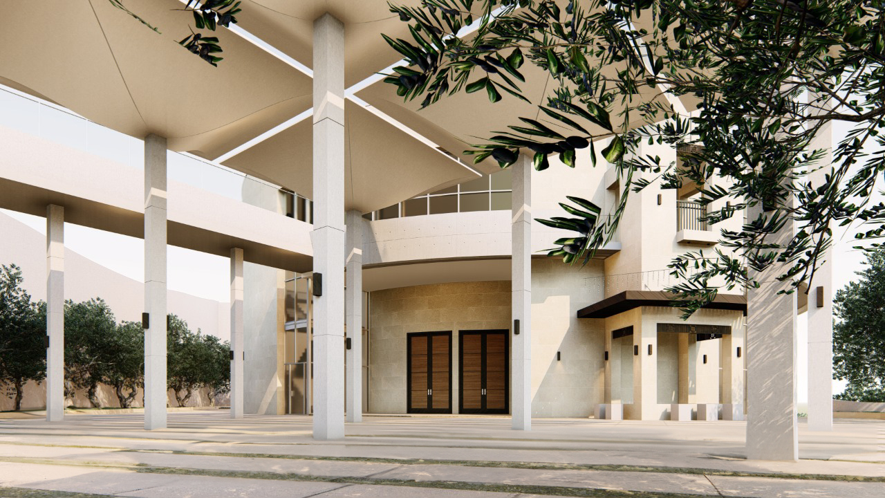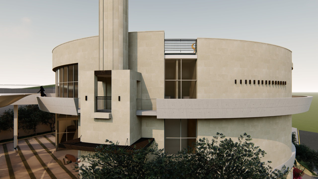 This mosque consists of two levels: the basement, which includes ablution areas and the imam's residence, and the ground floor, which houses the prayer hall. The challenge in this project is the presence of a dome spanning 25 meters without any internal columns.